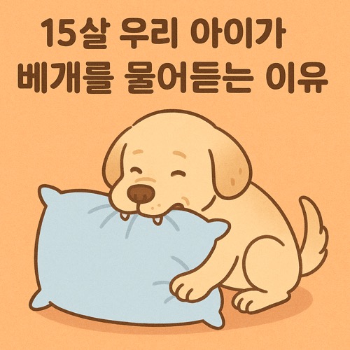 베개를 물어뜯는 모습, 예전엔 장난 같던 행동이 이제는 더 애틋하게 다가옵니다.