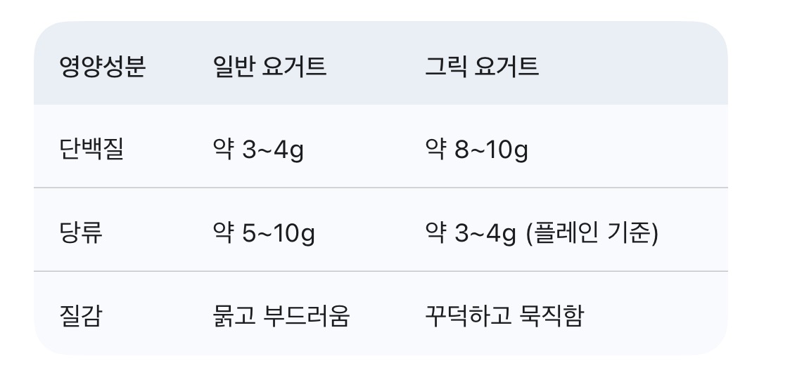 3. 영양성분 비교: 일반 vs 그릭 (100g 기준 예시)