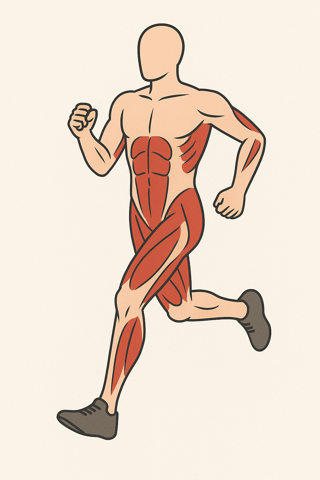 러닝은 단순한 유산소 운동처럼 보이지만, 사실 전신의 근육을 사용하는 복합적인 전신운동이에요. 특히 하체 근육이 집중적으로 쓰이지만, 자세와 균형을 위해 상체의 역할도 무시할 수 없죠!